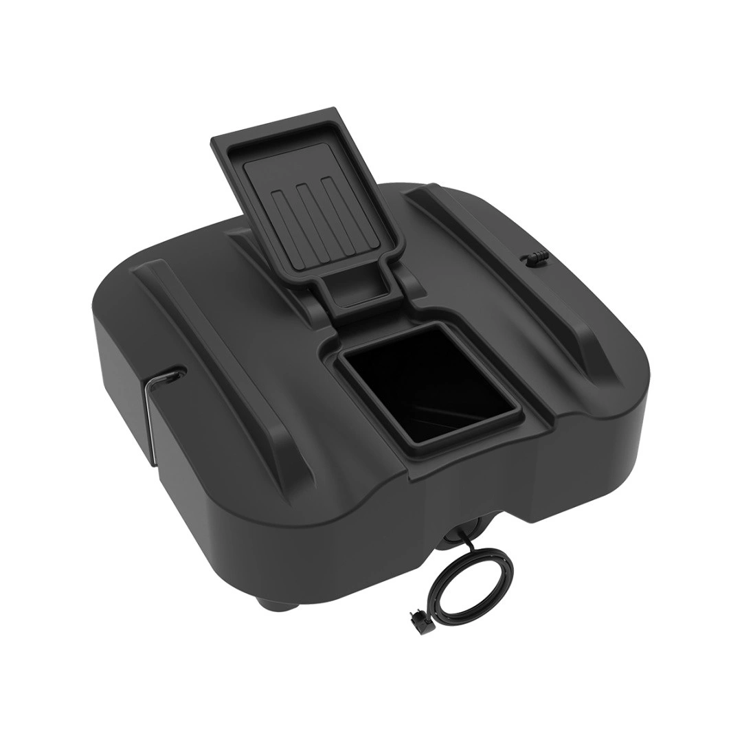 Емкость изготовлена из безопасного полиэтилена, не подвержена воздействию УФ лучей и коррозии. Для Вашего удобства все баки для душа уже оснащены отводом - угловым штуцером диаметром 20 мм - для более комфортного залива воды не только через крышку, но и с помощью подключаемого шланга.