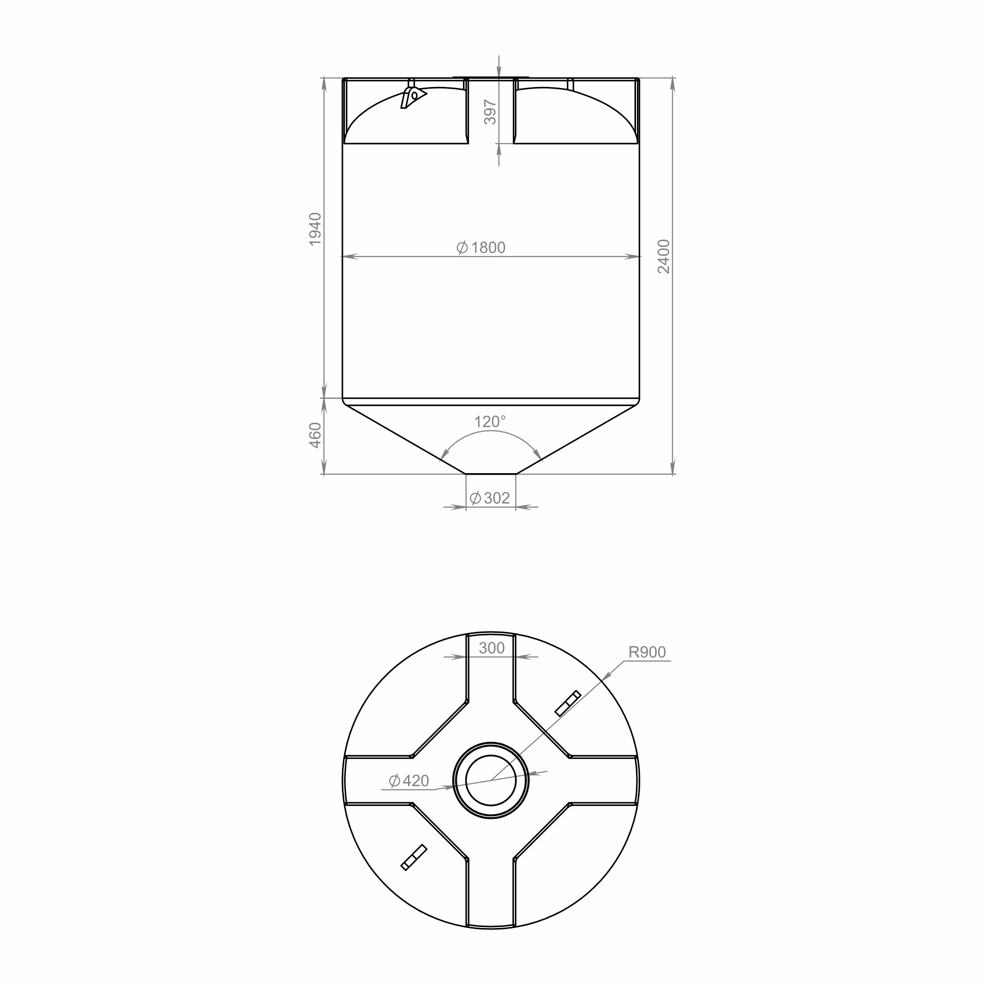 Бункер 5000 литров имеет конусное дно, что обеспечивает полный слив жидкости без остатка. Прочный пластиковый корпус бункера не имеет швов, что обеспечивает высокие прочностные свойства, а также не подвержен коррозии и воздействию солнечных лучей. Температура эксплуатации: от -40° до +50°С.