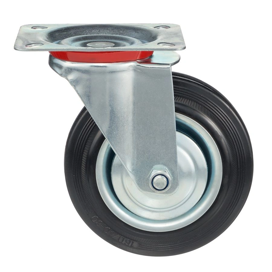 Колесо поворотное 4001-160, диаметр 160мм., грузоподъемность 145кг. Колеса из черной литой резины, центр из двух гальванизированных дисков из штампованной стали. Роликовый (игольчатый) подшипник расположен в углублении, выдавленном под прессом, и содержит цилиндрические ролики подшипника. Кронштейн изготовлен прессованием из листовой стали. В поворотном узле двухрядный шарикоподшипник. Возможно применение на относительно грубых полах складов, заводов, производственных и строительных площадках. Данные колеса можно использовать на неровных поверхностях, во влажной окружающей среде и использовании вне помещения, не рекомендуется применять в среде с органическими растворителями, хлорированными веществами, гидрокарбонатами и минеральными маслами. Температура эксплуатации от -20 до +70С.