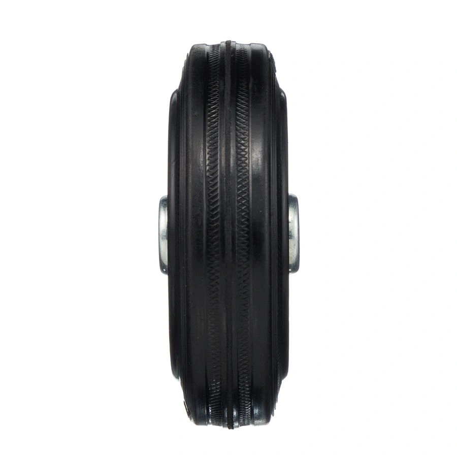 Колесо 4000-100 диаметром 100мм. под ось 12мм. Колесо из черной литой резины. Центр из стального оцинкованного обода из штампованной стали. В оси колес роликовый подшипник. Колеса из черной резины, центр из двух гальванизированных дисков из штампованной стали. Роликовый (игольчатый) подшипник расположен в углублении, выдавленном под прессом, и содержит цилиндрические ролики подшипника. Возможно применение на относительно грубых полах складов, заводов, производственных и строительных площадках. Данные колеса можно использовать на неровных поверхностях, во влажной окружающей среде и использовании вне помещения, не рекомендуется применять в среде с органическими растворителями, хлорированными веществами, гидрокарбонатами и минеральными маслами. Температура эксплуатации от -20 до +70С.