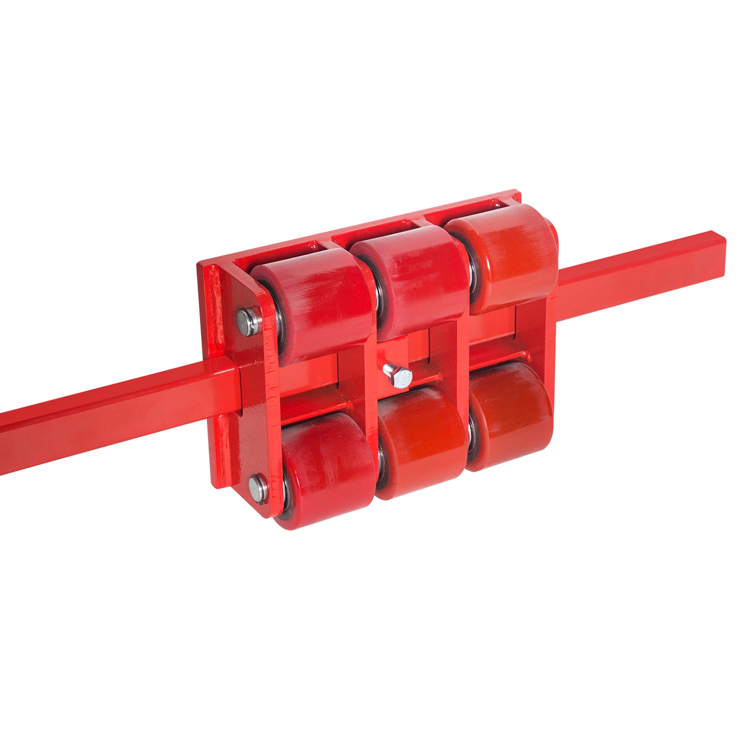 Комплект такелажных платформ X12 и Y12 рассчитан на перемещение различных грузов и оборудования весом до 24т. Система для перемещения груза X12 и Y12 представляют собой стальную комплексную конструкцию, состоящую из двух частей: 1. Ведущая опора X12. Снабжена ручкой для перемещения опоры и поворотным диском для маневрирования. 2. Ведомая опора Y12. состоит из двух неуправляемых такелажных платформ. Имеет регулируемую штангу, по её длине, в зависимости от габаритов перевозимого груза, можно сближать и удалять друг от друга роликовые платформы. В зависимости от веса груза, перемещение может осуществляться такелажными системами с одним или двумя ведущими катками. Два ведущих катка применяют для балансирования и безопасного перемещения больших по размерам и сверхтяжелых грузов.Полиуритановые ролики 80х70мм. Количество роликов 24 шт. (12 на управляемой платформе и по 6 роликов на каждой неуправляемой платформе), материал колес полиуретан, габаритные размеры опоры X-750x450x110мм., габаритные размеры опоры Y-256x450x110мм., общий вес комплекта 100кг.