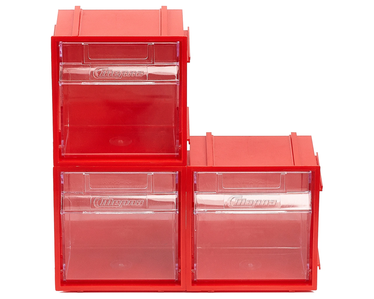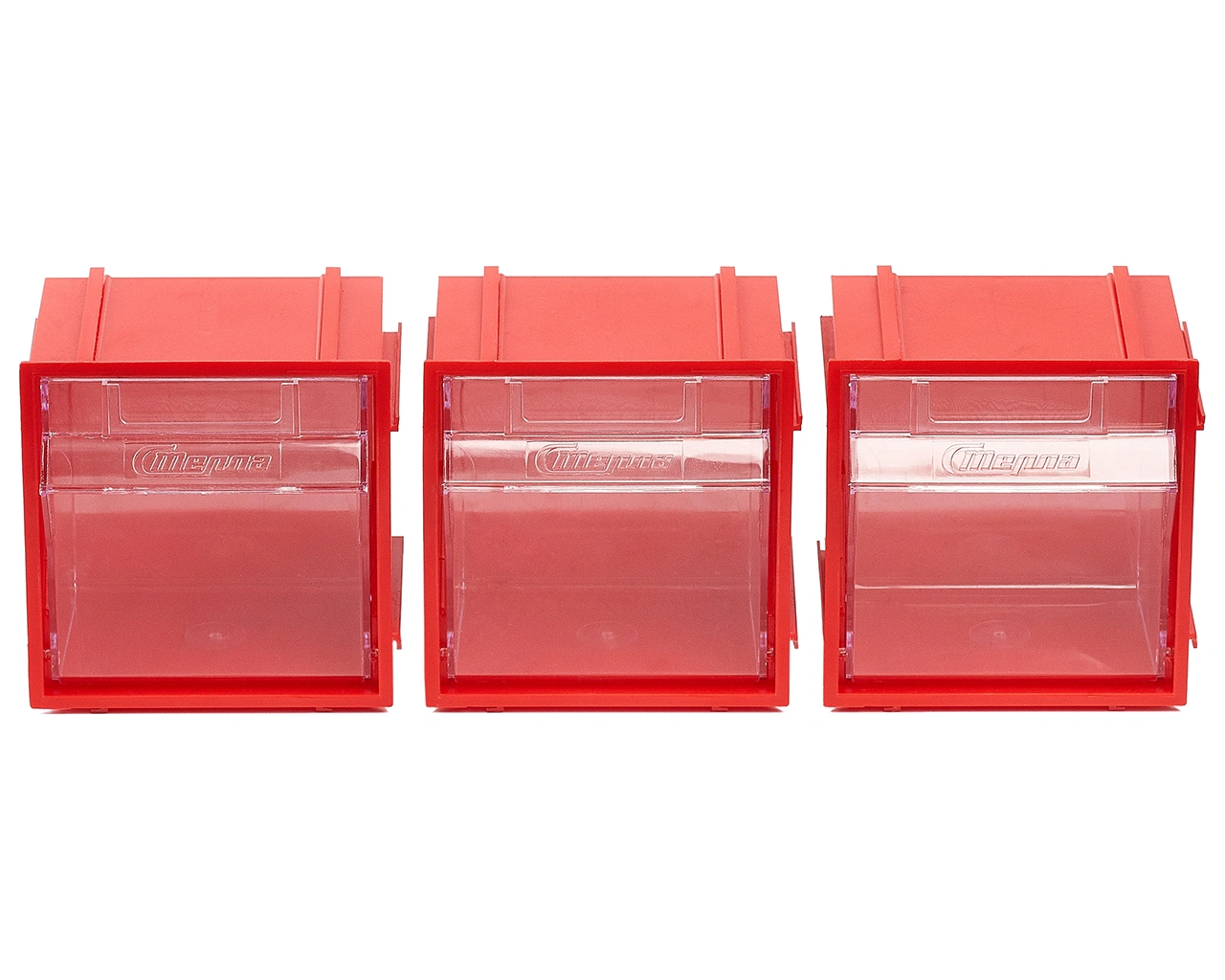 Комплект из 5-ти коробов откидных Стелла-техник F-105-1 (105х87х112мм.), красный, прозрачный служит для хранения мелкоштучных предметов. Данные короба с помощью специальных пазов соединяются друг с другом по всем четырем сторонам, благодаря чему, пользователь может выстроить систему хранения по желаемым ему габаритным размерам. Внутренние ячейки короба не подвержены случайному опрокидыванию. Откидная ячейка обеспечивают быстрый доступ к необходимым предметам. В случае необходимости полного высыпания или наполнения внутренние ячейки легко извлекается. Полезный внутренний размер ячеек 88х65х70мм. Специальный пластик, из которого выполнен короб, выдерживает значительные нагрузки и обладает оптимальной эластичностью. На задней стенке короба присутствуют отверстия для крепления, через которые можно легко прикрепить к стене, как отдельно каждый, так и целый собранный набор из коробов, любого количества. Обзорность содержимого сквозь прозрачные внутренние ячейки, наличие отсека для информационных бирок, легкое извлечение внутреннего короба для опустошения и наполнения, все это является неоспоримым преимуществом откидных коробов серии F. Температура эксплуатации от -10 до +70С.