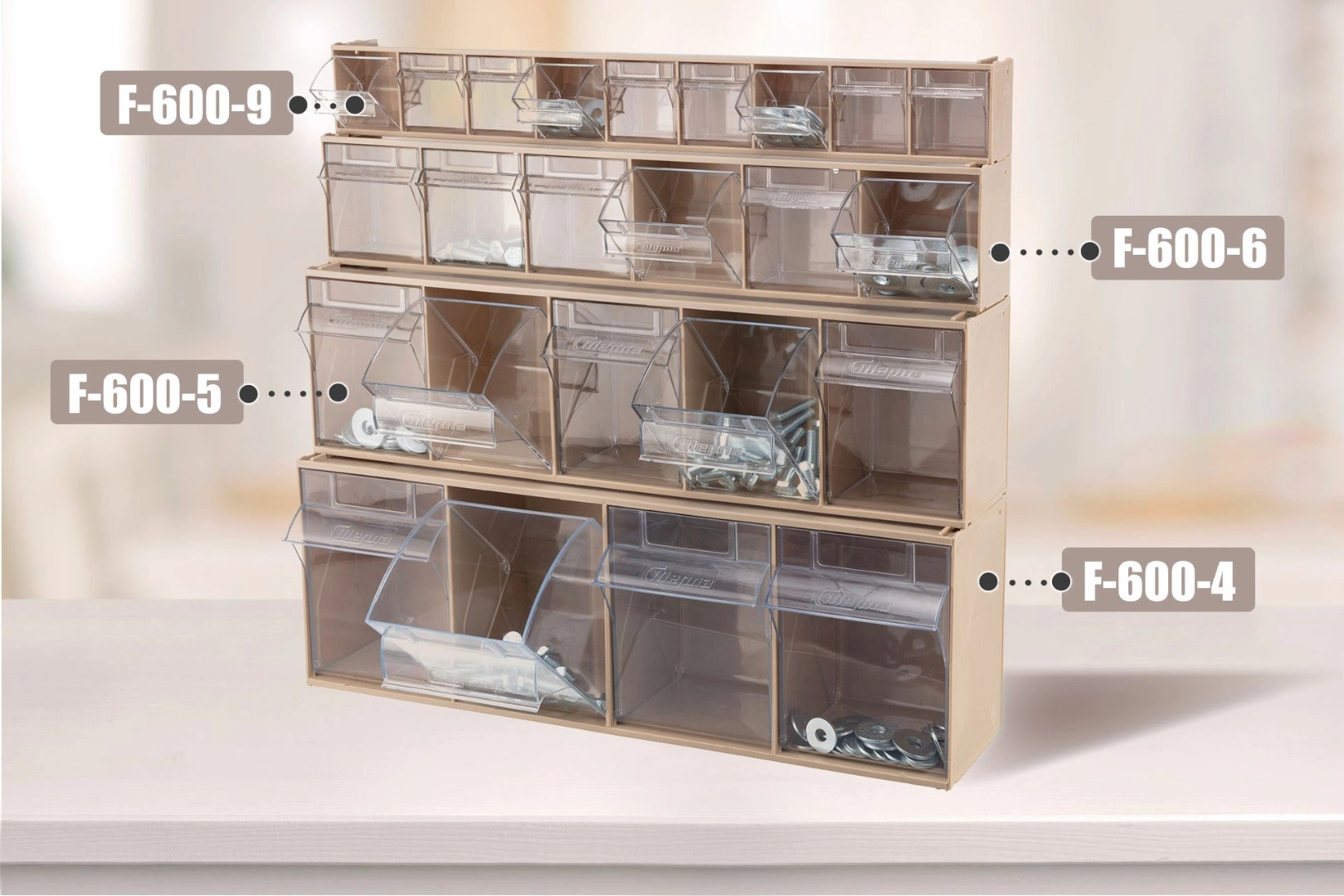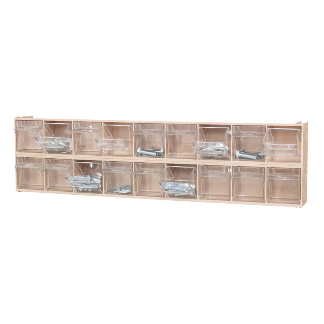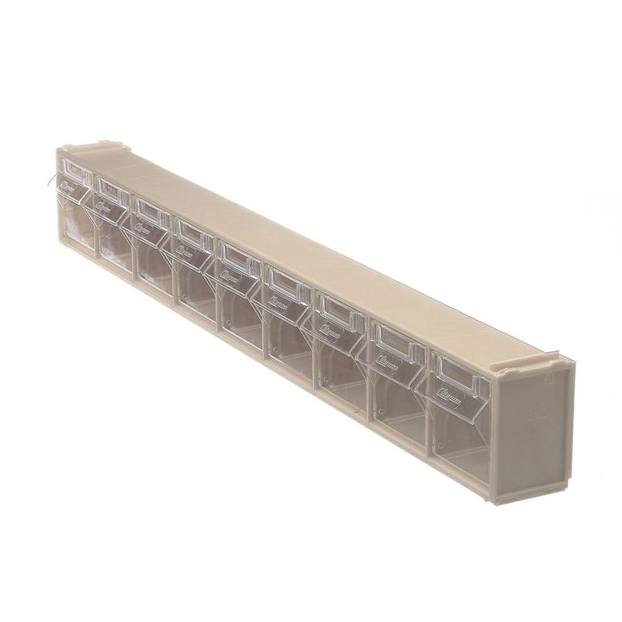 Короб откидной F-600-9-B, 600х68х78 мм 9 ячеек, бежевый / прозрачный служит для хранения мелкоштучных предметов. Данная система хранения не подвержена случайному опрокидыванию. Откидные ячейки обеспечивают быстрый доступ к необходимым предметам. В случае необходимости полного высыпания или наполнения короб легко извлекается. Полезный внутренний размер каждой ячейки 50х43х47мм.