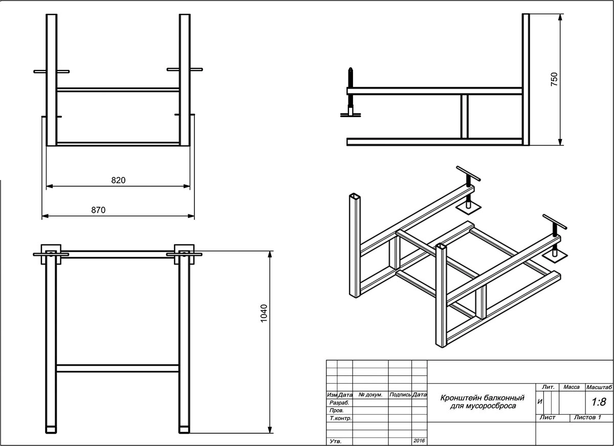 Предназначен для закрепления строительного мусоропровода к балконам, либо к горизонтальным перекрытиям здания.