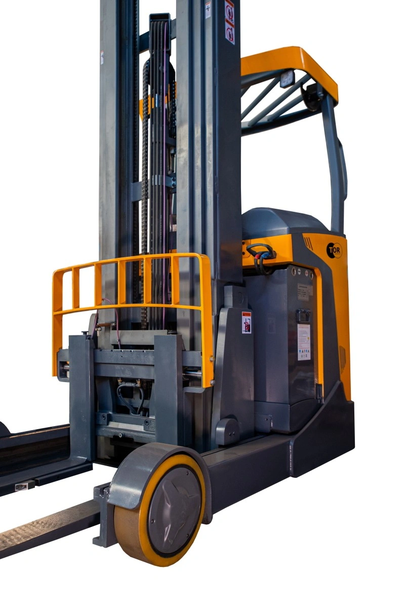 Ричтрак CQD20-D с литиевым аккумулятором 48/400 В/Ач. Ричтраки CQD20-D - мощные и функциональные машины, созданные для оптимизации складской логистики. Идеально подходят для интенсивной и безопасной работы на складах с высотным хранением, максимальная высота подъема грузов -12,5 метров. Множество вспомогательных функций, удобство органов управления и эргономичное место оператора обеспечивают комфорт и минимизируют физическую нагрузку оператора. Высокие стандарты производства, большое внимание к качеству используемых компонентов и внедрение новейших разработок в отрасли увеличивают производительность ричтраков ТОR, облегчают обслуживание, гарантируют безопасность и долгий срок службы. Подходят для обслуживания паллетных, проходных и набивных стеллажей.Преимущества ричтрака CQD20-D: - Высокая скорость передвижения 10,5/11 км/ч (с грузом/без) - Грузоподъемность 2000кг - Подъем на высоту 6м без потери грузоподъемности - Система усиления рулевого управления (EPS) - Электронный клапан с возможностью регулировки скорости движения катерки - Двигатель передвижения S2 60 минут мощностью 6,5кВт - Двигатель подъема S3 15% мощностью 8,2кВт - Емкий кислотный АКБ 48/500 В/Ач - Особое строение мачты обеспечивает наилучший обзор - Быстрый и удобный доступ к основным узлам - Система стабилизации при высотных операциях Возможные дополнительные опции для ричтраков CQD20-D*: - Камера для наблюдения за вилами - Функция быстрого подъема (двигатель подъема 12кВт) - АКБ увеличенной емкости 600,800,930Ач - Литиевый АКБ 400,450,525,600,750, 875Ач - Система стабилизации ASC автоматически блокирует колеса при движении мачты вперед-назад - Модуль взвешивания на вилах - Закрытая кабина - "холодное" исполнение * Установка возможна на заводе- изготовители по предварительному заказу. Стоимость и доступность опций уточняйте у вашего менеджера. Безопасность: - Специальная конструкция мачты оставляет широкий обзор - Прочный материал мачты обеспечивает высокую остаточную грузоподъемность и предотвращает тряску - Усилитель рулевого управления (EPS) - Функция ограничения по высоте: при достижении максимальной высоты вил, подъемный двигатель автоматически снижает скорость для обеспечения сохранности грузов; - Функция ограничения скорости: когда подъем вил превышает высоту свободного хода, скорость передвижения будет автоматически снижена для обеспечения безопасности работы; - Функция контроля скорости поворота: автоматически снижает скорость в соответствии с выбранным углом поворота транспортного средства; - Скорость выдвижения мачты замедляется при приближении к крайним положениям; - Тормозная система управляется гидравлическим тормозом и рекуперативным торможением одновременно. Это обеспечивает короткий тормозной путь, отсутствие инерционного воздействия, безопасность и надежность; - Стояночный тормоз включает электромагнитное тормоз, который включается автоматически после парковки, так же имеется функция сопротивления скольжению на наклонных поверхностях; - Датчик присутствия оператора OPS блокирует движение и функции спуска/подъема, если в водительском кресле нет оператора. - Технология CANbus используется для отслеживания скорости двигателя, температуры и другой информации в режиме реального времени для систематизированного управления замкнутым контуром; - Технология управления преобра
