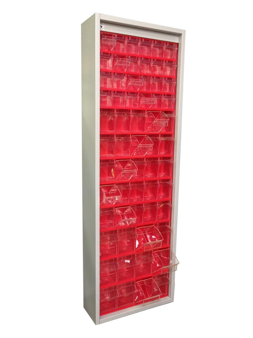Шкаф открытый Стелла-техник V-420-00-04-05-03 (665х250х2000) представляет собой удобную систему хранения, на основе откидных коробов. Шкаф подойдет для выставочных залов, магазинов, офисов, складов. Благодаря боковым стенкам шкафа, существует возможность выравнивания коробов по передней лицевой плоскости, значительно улучшающий эстетический вид конструкции. Благодаря визуализации содержимого коробов, он отлично подходит для рекламирования и хранения мелкоштучной продукции в больших объемах. Комплектация: Шкаф FOX (665х250х2000) V-420, без коробов - 1 шт.; Короб откидной Стелла-техник F-600-6 , 600х96х112мм, 6 ячеек, красный, прозрачный - 4 шт.; Короб откидной Стелла-техник F-600-5 , 600х140х168мм, 5 ячеек, красный, прозрачный – 5 шт.; Короб откидной Стелла-техник F-600-4 , 600х178х206мм, 4 ячейки, красный, прозрачный – 3 шт.; Упаковка. Габаритные размеры V-420-00-04-05-03: высота 2000мм., ширина 665мм., глубина 250мм.