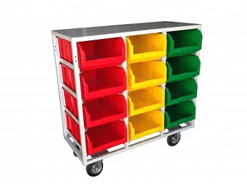 Стеллаж с направляющими мобильный односторонний V4-12 ячеек (200К), грузоподъемность до 500кг. Предназначен для размещения контейнеров V-4 в отдельных ячейках на продольных направляющих. Подходит для эксплуатации в автомастерских, в строительных магазинах, на складах, где необходимо складирование мелкоштучных изделий и инструментов. При использовании вместе с колесами и ручкой, данный стеллаж становится мобильным, что значительно расширяет его функциональные возможности для перемещения хранимых предметов по территории предприятия, склада, цеха. Конструкция ящиков модели V4 обеспечивает быстрый и легкий доступ. Ящики открытого типа позволяют быстро находить нужные позиции, это возможно благодаря хорошему визуальному обзору содержимого. Конструкция стеллажа позволяет одним движением руки извлекать нужный ящик для его наполнения или опустошения, и так же легко устанавливать его на место. Стеллаж поставляется в разобранном виде и состоит из: металлического каркаса стеллажа с направляющими одностороннего V4-12 ячеек - 1 шт.; ящиков пластиковых модель V-4 - 12 шт.; комплекта колес резина, сталь диаметром 200мм.; ручки. Температурный режим эксплуатации от +20 до +70С.