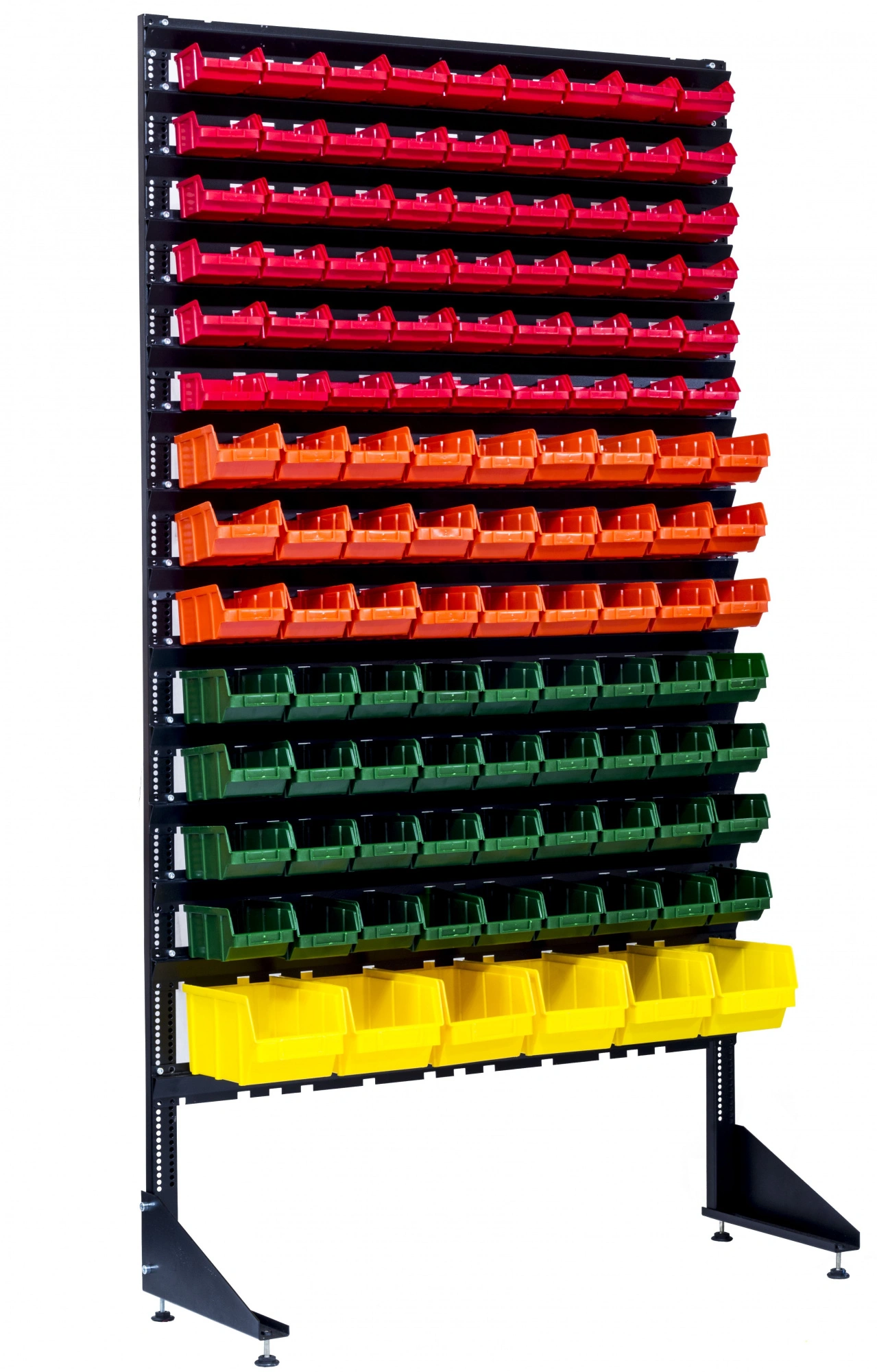 Конструкция данного оборудования, позволяет комбинировать ящиками разных размеров. Перфорация на стойке, позволяет менять шаг в зависимости от размера лотка. Траверсы крепятся на стойку болтами М6, (болты в комплекте).