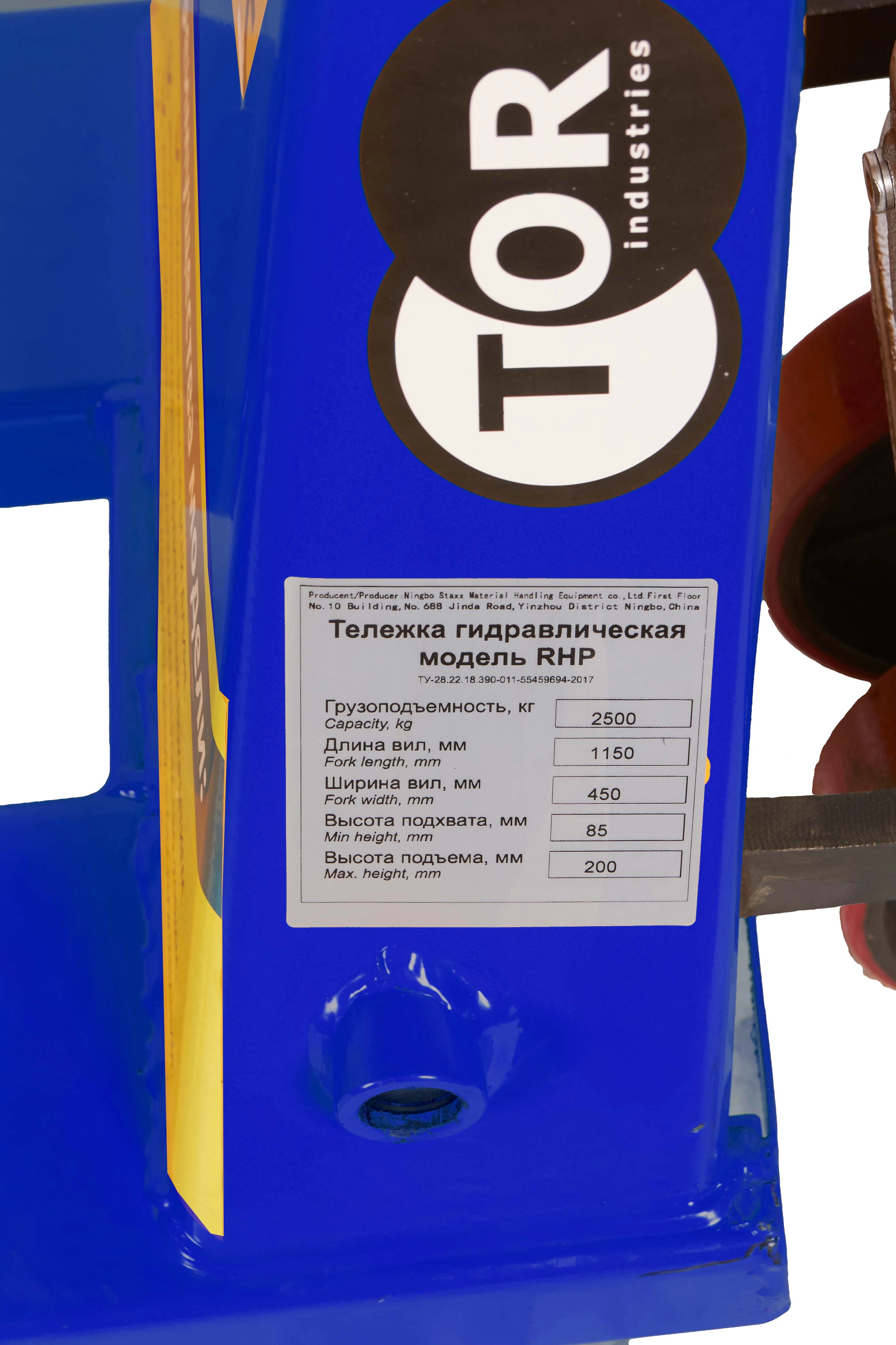 Гидравлические тележки серии TOR RHP — предназначены для работы с максимально допустимыми весами с высокой интенсивностью. Большой запас прочности в конструкции и гидроузле. Данная модель предназначена для работы с нестандартными по высоте подхвата поддонами. Данная модель имеет высоту подхвата 60 мм и способна возить грузы до 2,5 тонн. Гидравлические тележки производства TOR – это простые и надежные в эксплуатации помощникина складе. Все разнообразие складской техники TOR предоставляет нашим клиентам широчайшиевозможности по выбору самой подходящей тележки под свои нужды. Гидравлические тележки серии TOR RHP — предназначены для работы с максимально допустимыми весами с высокой интенсивностью. Большой запас прочности в конструкции и гидроузле. Данная модель предназначена для работы с нестандартными по высоте подхвата поддонами. Данная модель имеет высоту подхвата 60 мм и способна возить грузы до 2,5 тонн. Подробные технические характеристики тележки можно посмотреть ниже в разделе технические характеристики. При выборе гидравлической тележки обращайте внимание на ее основные эксплуатационные характеристики, которые важны для вас. Если нужна консультация специалиста, воспользуйтесь удобным для вас способом связи для получения исчерпывающей информации по выбору тележки.
