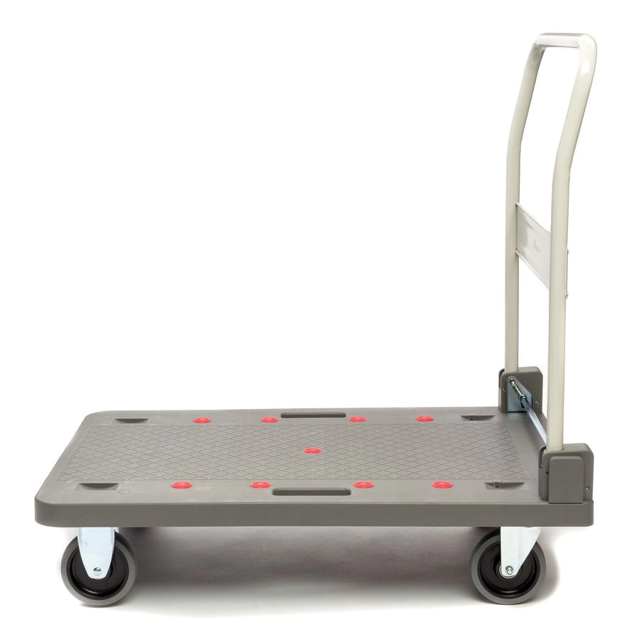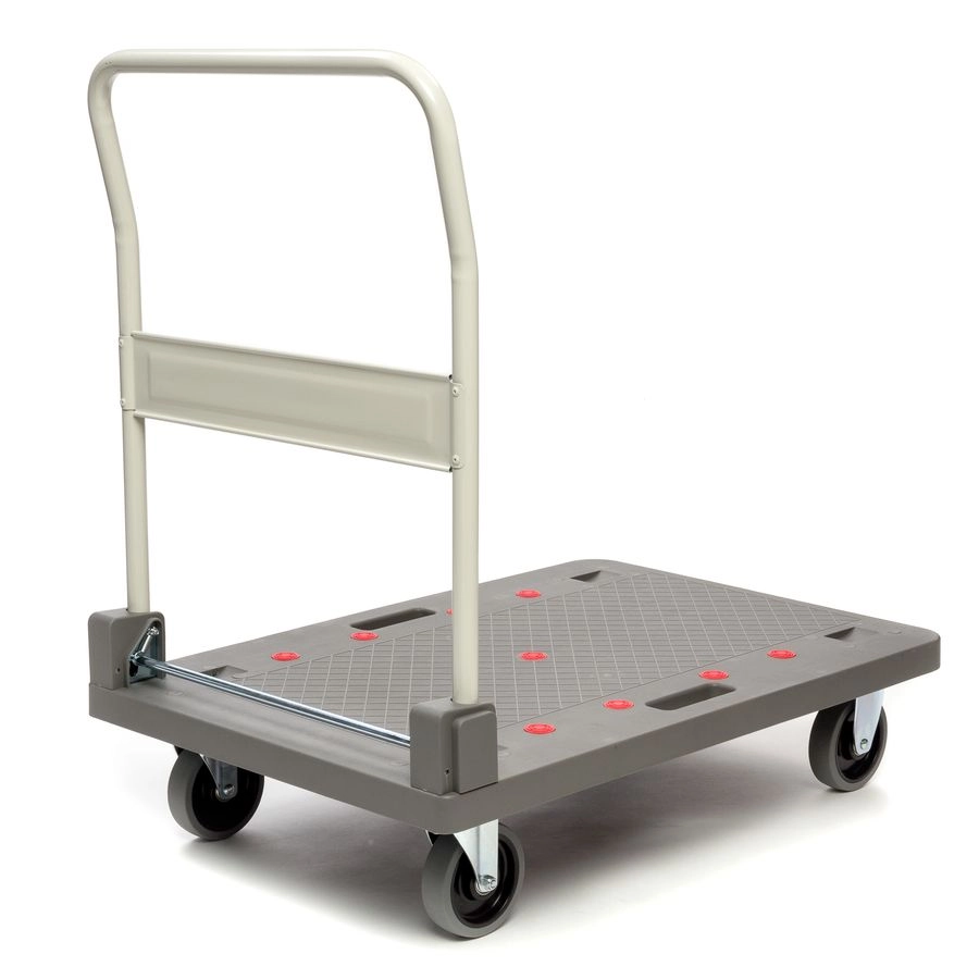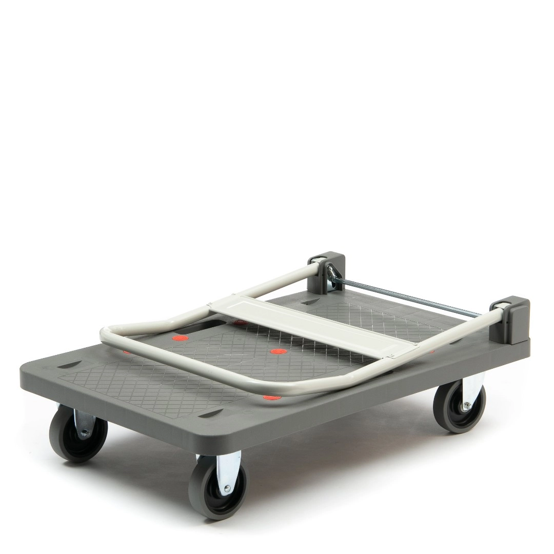 Тележка платформенная Стелла-техник FW-250П со складной ручкой предназначена для перевозки груза весом до 250кг по ровной поверхности в магазине, офисе, на складе. Тележка оснащена удобной складной ручкой, противоскользящей пластиковой платформой. Оснащается двумя поворотными и двумя не поворотными колесами диаметром 125 мм из термопластичной резины. Наличие складной ручки обеспечивает компактное хранение тележки.
