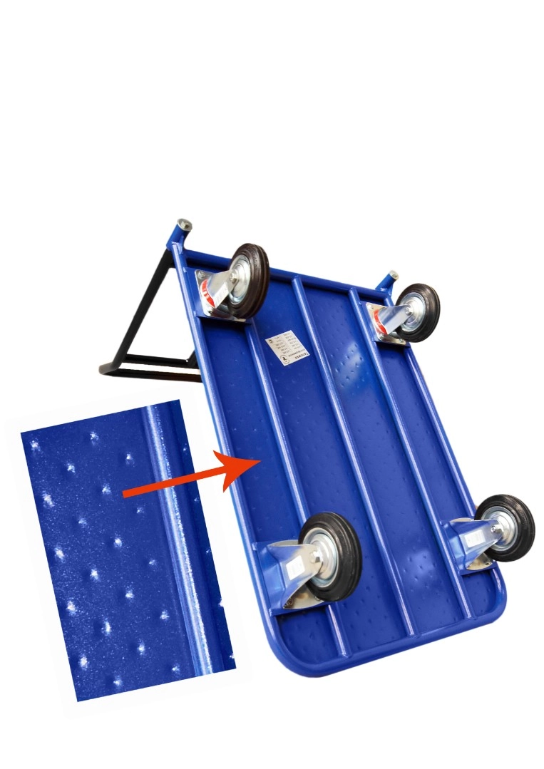 Платформенная 4-х колесная тележка КП-900-200-К используется для перемещения крупногабаритных и тяжелых грузов в складских помещениях. Ручка крепится к платформе болтами, для компактного хранения можно снять, высота ручки 750мм. Металлическая платформа изготовлена из стального листа толщиной 1,2мм., размер платформы 800х1500мм., покрытие полимерное, цвет - синий. Для легкого перемещения тележка КП-900-200-К комплектуется двумя поворотными и двумя неповоротными колесами, изготовленными из высококачественной литой резины, диаметром 200мм., комплектом крепежа. Большая платформа тележки позволяет перемещать крупногабаритные и тяжелые грузы. Грузоподъемность до 550кг.