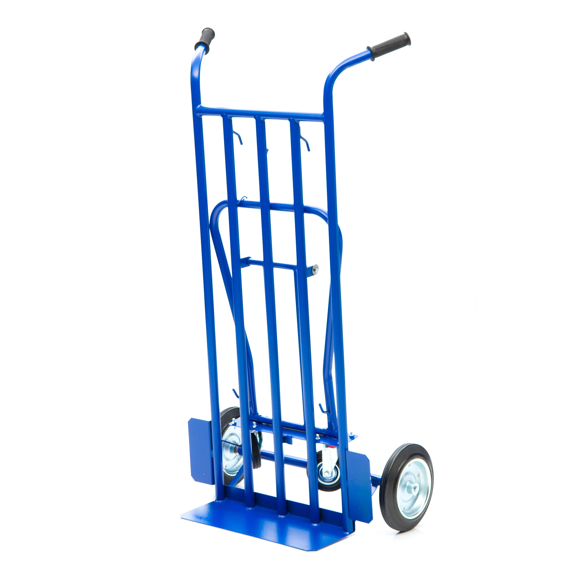 Грузовая специализированная тележка-трансформер КГК-350-И используется для перевозки различных грузов, вес которых не превышает 350кг. Конструкция принимает три вида: 1. Горизонтальная тележка с бортом и платформой для коробок, мешков, ящиков и комбинированных товаров. 2. Наклонный вариант на трех колесах с площадкой под тяжелые штучные предметы. 3. Двухколесный вариант для перемещения и хранения модели. Размер малой платформы 500х200мм. Размер трубчатой платформы 500х1200мм. На тележке установлены два колеса диаметром 250мм., и два дополнительных колеса диаметром 125мм., для опоры и маневрирования тележкой под наклоном и для работы в горизонтальном положении. Рукоятка имеет удобную для захвата форму и покрыта резиной для удобного захвата. Тележка комплектуется: метизами для крепления и промышленными колесами из черной стандартной резины, от всемирно известного, ведущего итальянского производителя Tellure Rota.
