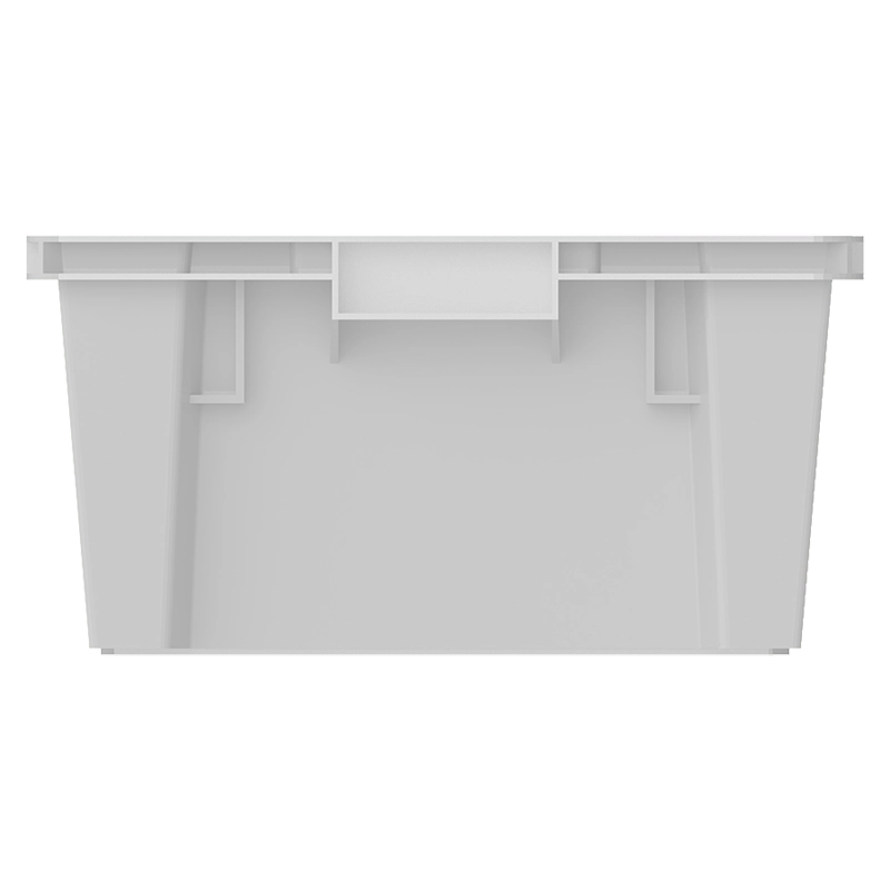 Пустые ящики вкладываются друг в друга, экономя места до 60% при транспортировке и хранении. Устойчиво штабелируются друг на друга при повороте на 180 градусов.